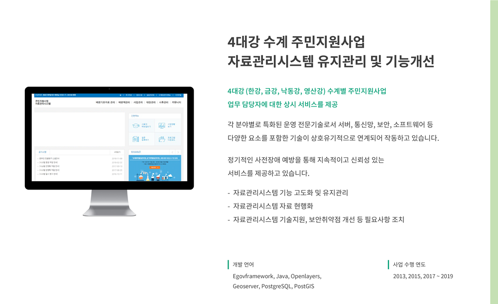 대국민 서비스, 행정업무 통합관리 및 효율적인 시스템 구축 등 다양한 시스템을 구축합니다.